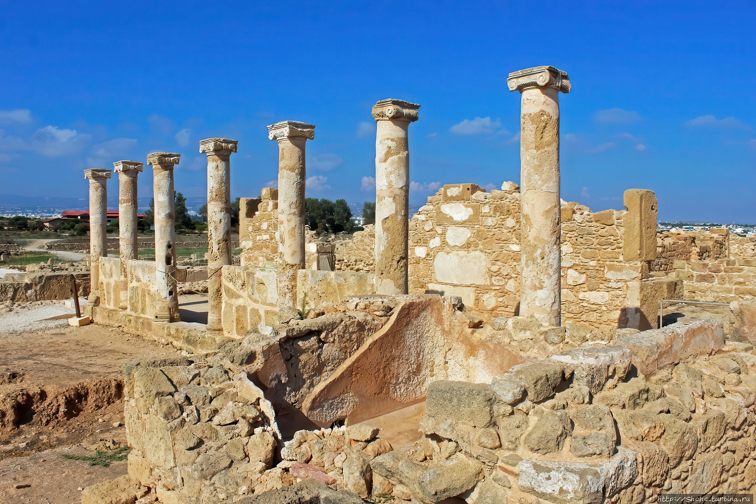 The ruins of Panagia Chrysopolitissa basilica from the 4th century CE are among the largest ever excavated in Cyprus. Several magnificent marble columns with Ionic and Corinthian capitals have been re-erected while others lie scattered around the site.
