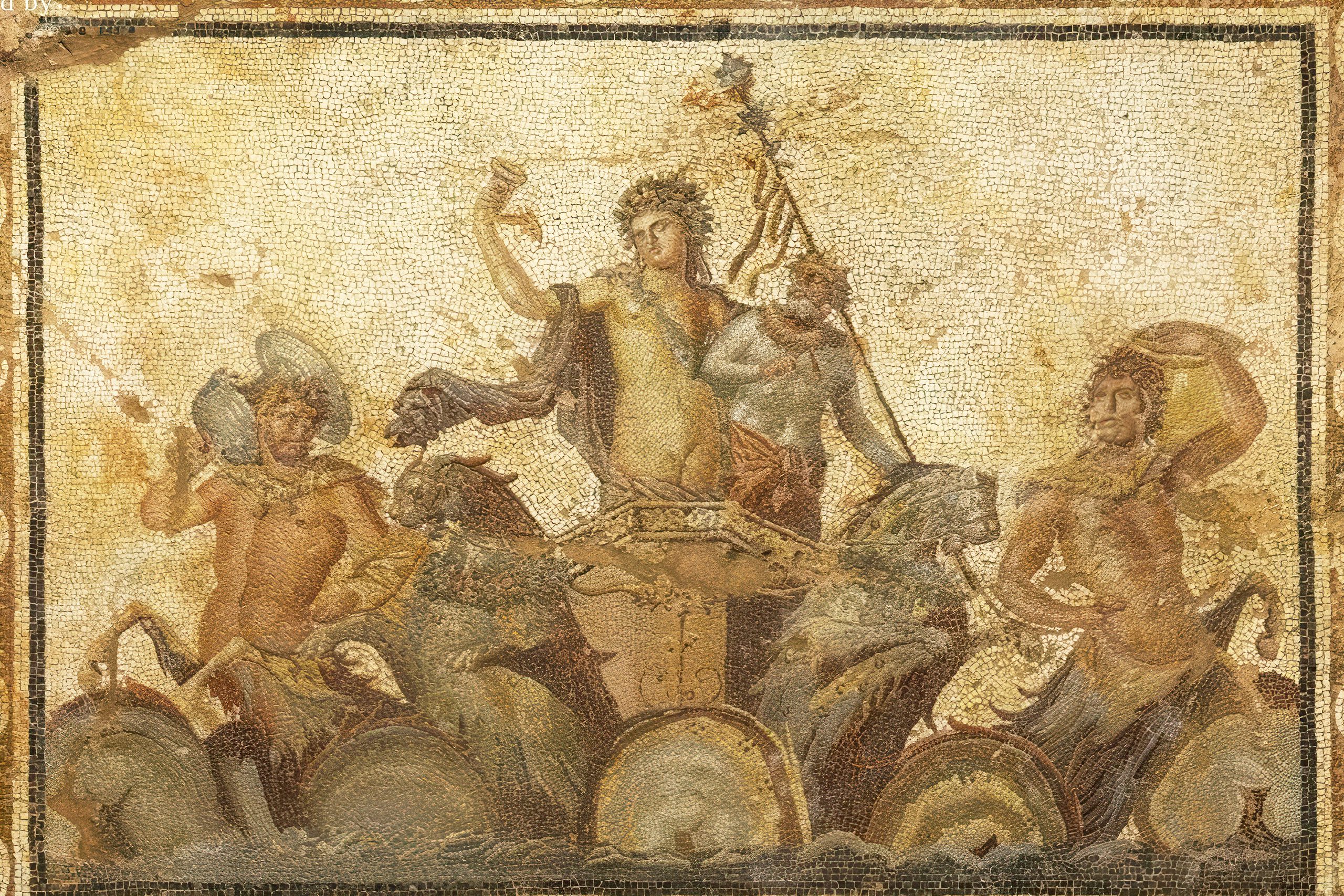 The most notable mosaic shows Dionysos on a chariot counseling the nymph Akme and drinking wine, while other mosaics depict mythological, hunting and vintage scenes. A Hellenistic pebble mosaic representing the mythical sea-monster Scylla from an earlier villa of the 3rd century BC which was found below the Roman villa is on display on site. This older mosaic is the oldest in Cyprus and demonstrates the continuity of artistic traditions.