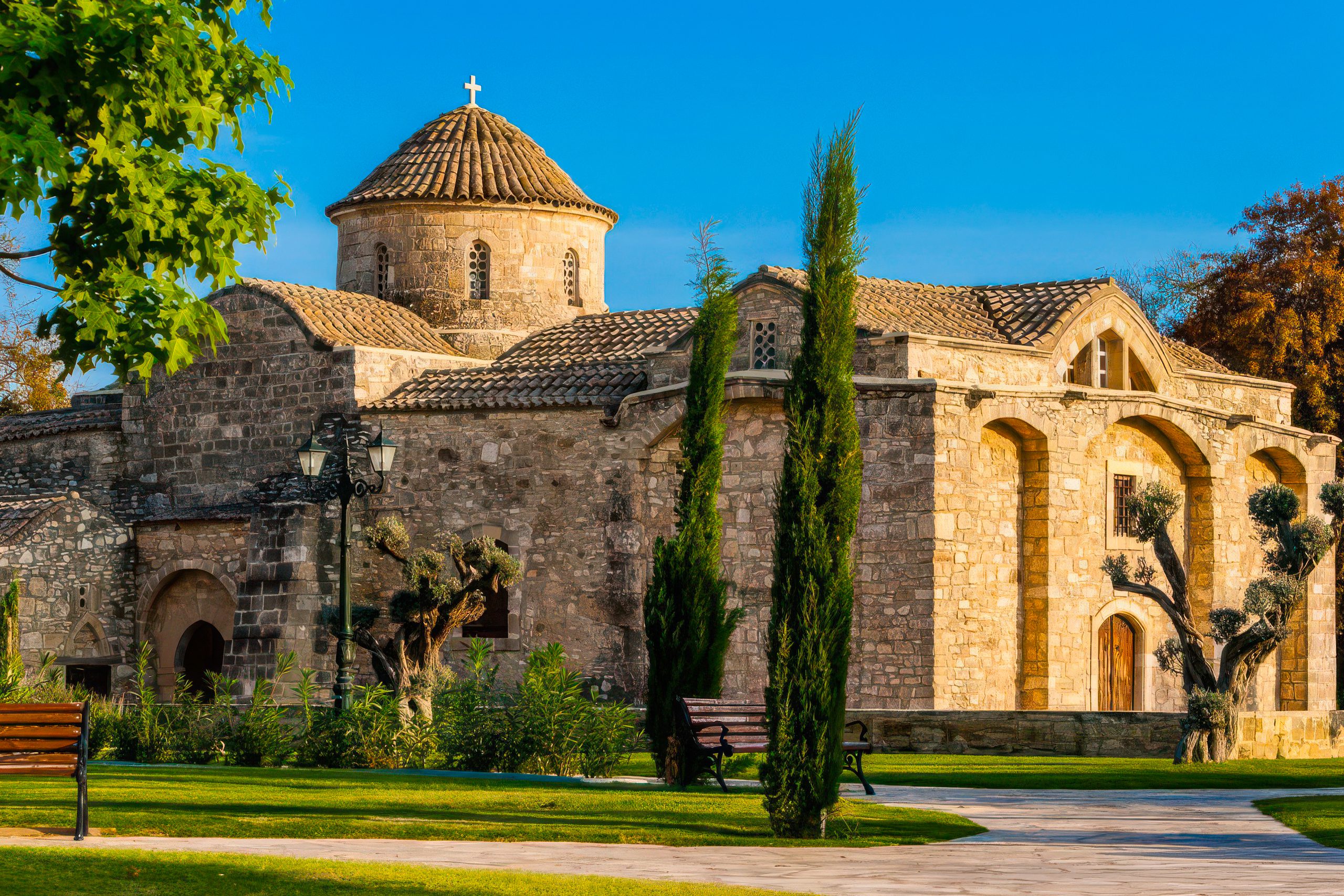 This stone church preserves multiple layers of Cyprus’s religious history, from early Christian times through Byzantine and Frankish periods. The building serves as an active place of worship while housing artistic treasures that connect directly to the Byzantine Empire’s golden age.