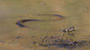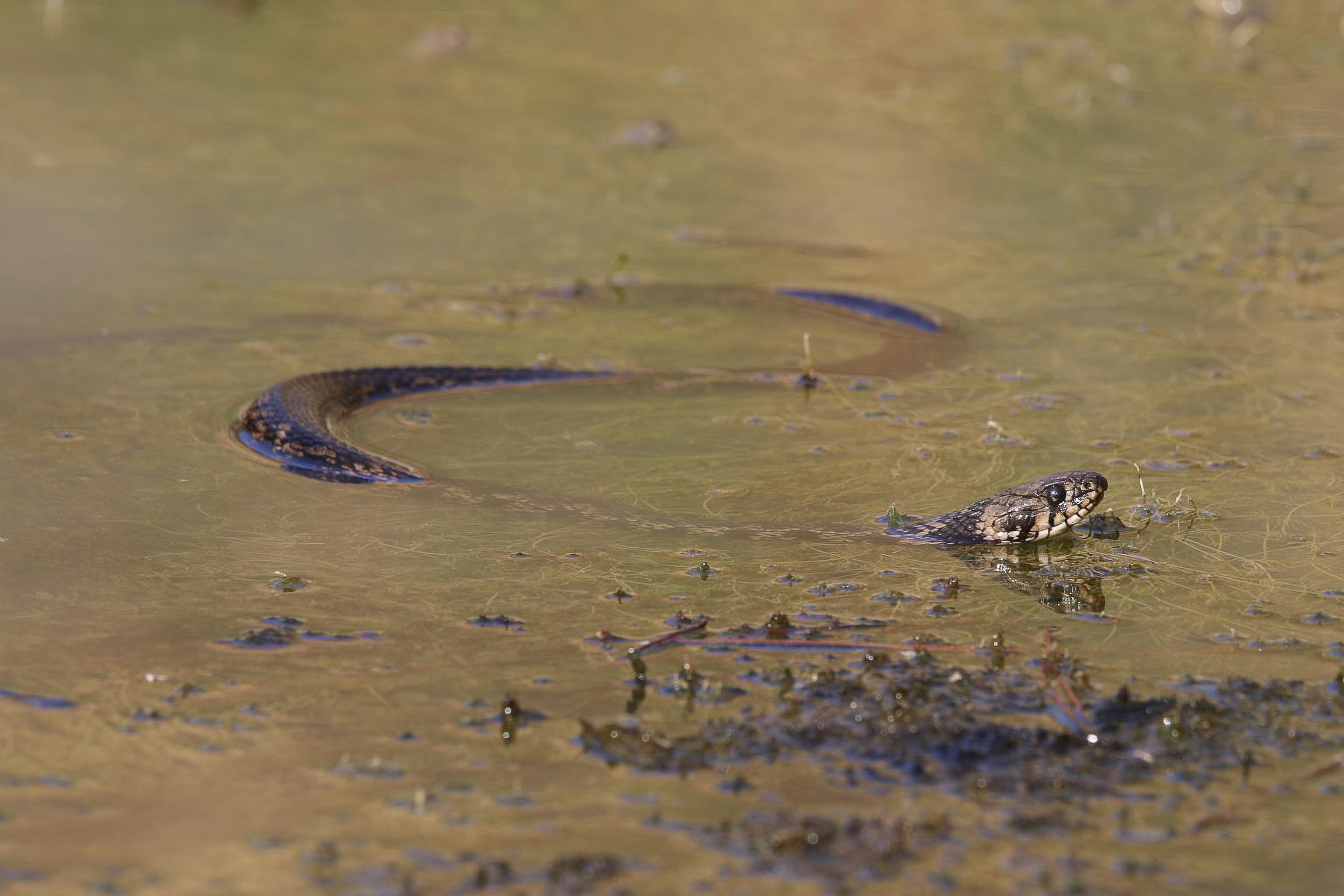 The scientific name Natrix natrix cypriaca identifies it as a subspecies of the European grass snake. Despite the name, it behaves more like a water snake, earning the local name Nerophido. These snakes swim expertly through the lake’s waters, hiding among aquatic vegetation and rocks. They hunt amphibians, small fish, and invertebrates that thrive in seasonal wetland conditions.