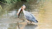 Multiple heron species visit Cyprus during migration periods and winter months. The grey heron is among the most commonly observed, standing up to one meter tall with ash-grey plumage, white head and neck marked by a black stripe extending from the eye to a black crest. These birds hunt by standing motionless in shallow water before striking rapidly at fish, amphibians, and small mammals. They fly with necks curved in an S-shape, a characteristic shared by all herons and egrets.