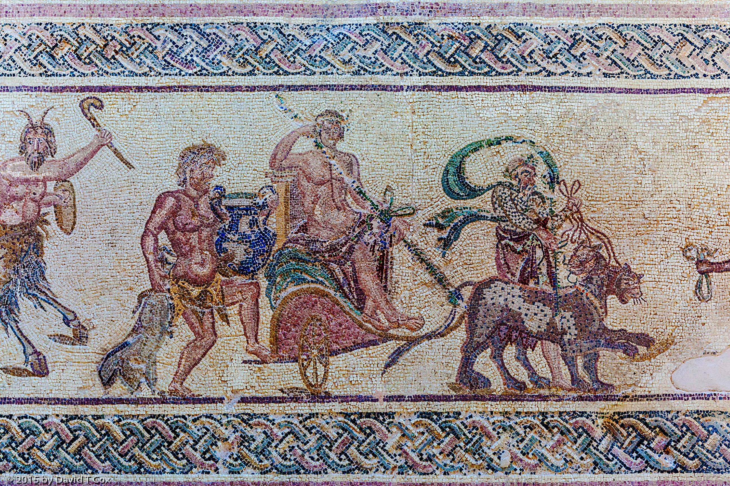 The mosaics here revolve around Dionysos, the god of wine, celebration, and transformation. Scenes such as the Triumph of Dionysos, where the god rides in procession surrounded by satyrs and musicians, were not chosen at random. They reflected Roman ideals of otium, a concept of cultivated leisure that balanced pleasure with education and self-control.