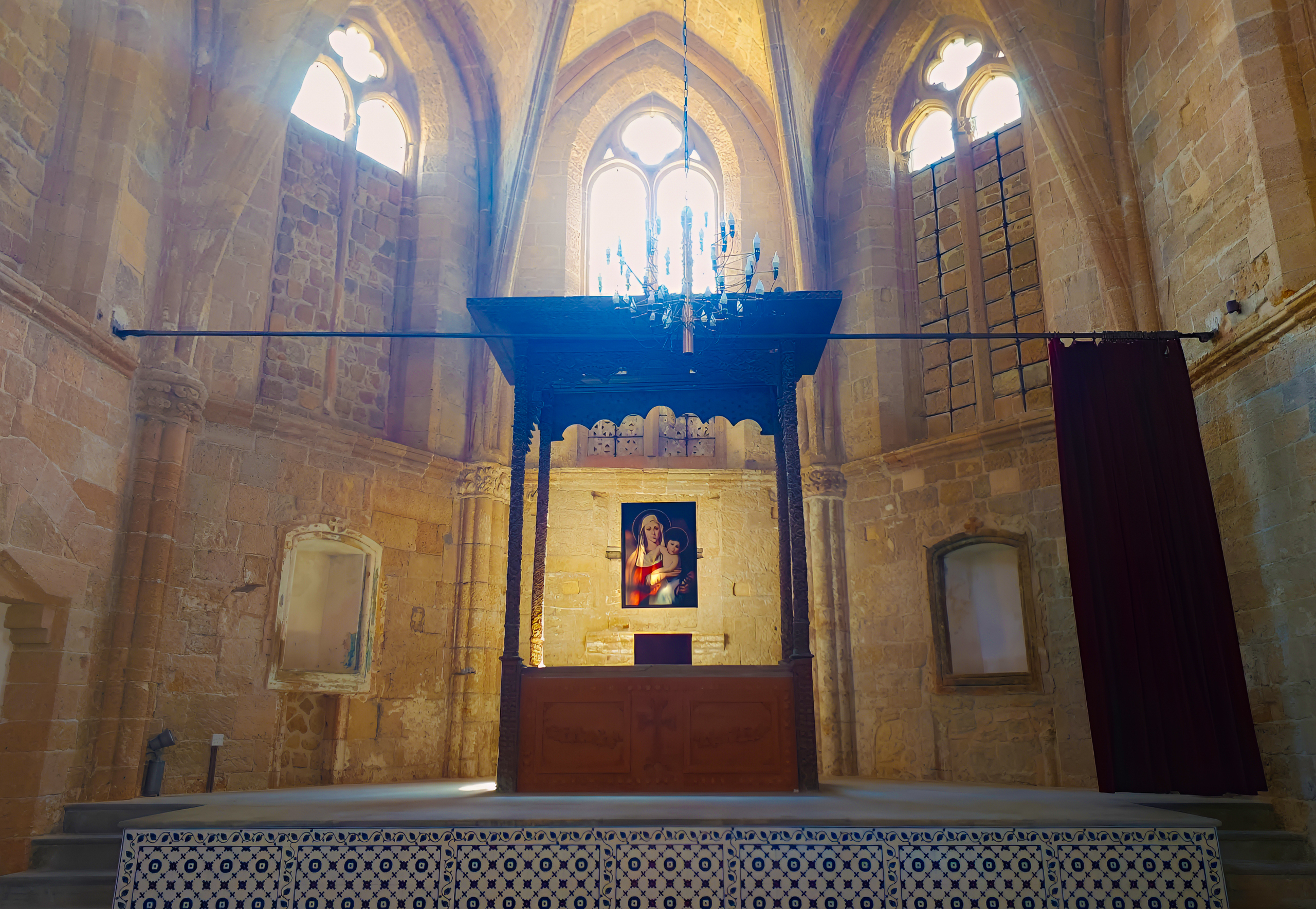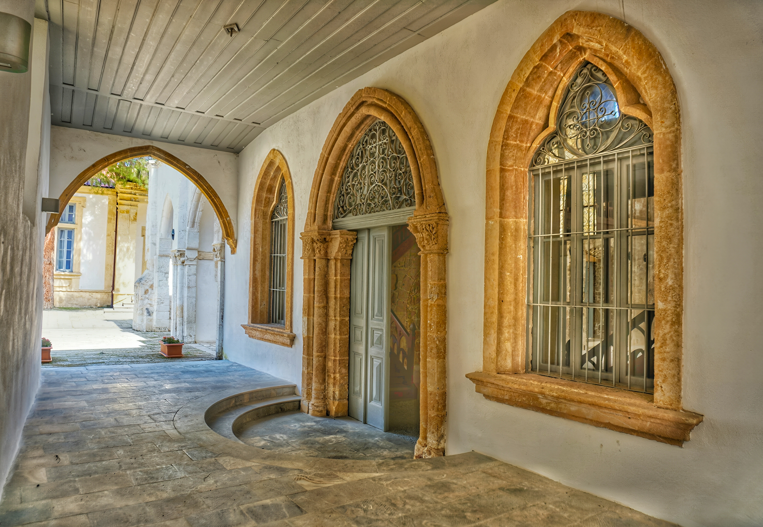 The existing building showcases the Gothic architectural style typical of the early 14th century Lusignan period. The square nave with semi-octagonal apse creates an intimate worship space. Cross vaults span the ceiling, distributing weight to thick stone walls and allowing for the characteristic Gothic vertical emphasis. An arch covers the western portion of the church, framing the entrance.