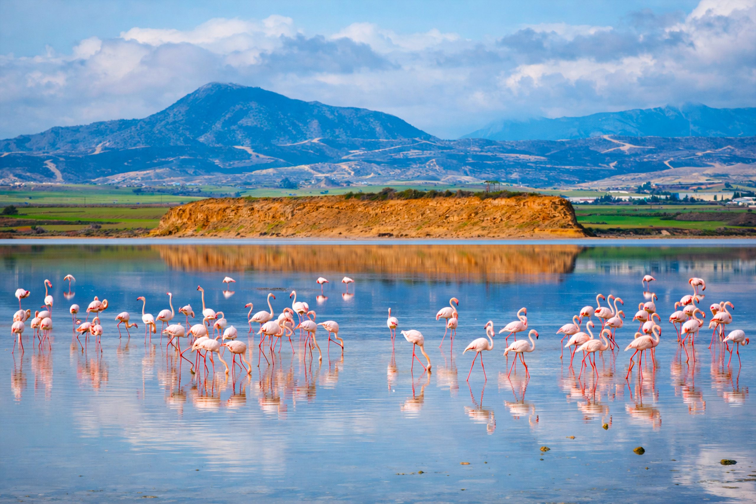 Cyprus is home to two major salt lake systems that serve as crucial stops for thousands of birds during their migration between Europe and Africa. The Larnaca Salt Lake complex lies near the island’s southeastern coast, while the Akrotiri Salt Lake sits southwest of Limassol. Both wetlands hold international ecological significance and attract up to 20,000 flamingos each winter, along with dozens of other bird species.
