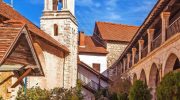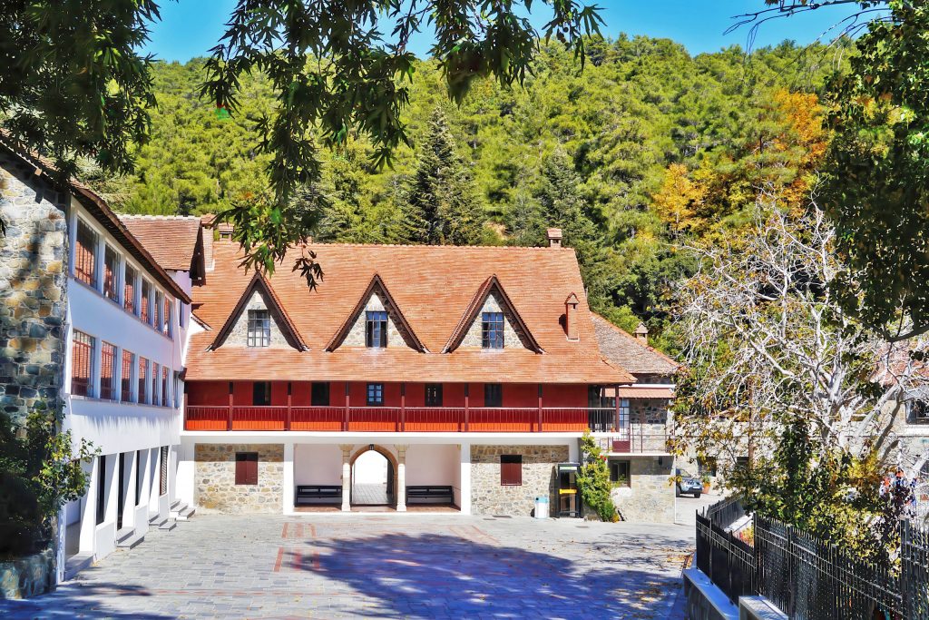 Cypriot monasteries share distinctive architectural and spiritual characteristics that make them immediately recognizable. They’re typically located in dramatic natural settings – mountain slopes, forested valleys, cliff faces, or beside springs considered sacred. The architecture blends local stone construction with Byzantine design principles: domed churches form the spiritual center, arched cloisters provide covered walkways, red-tiled roofs protect against mountain rains, and wooden balconies add practical living space.