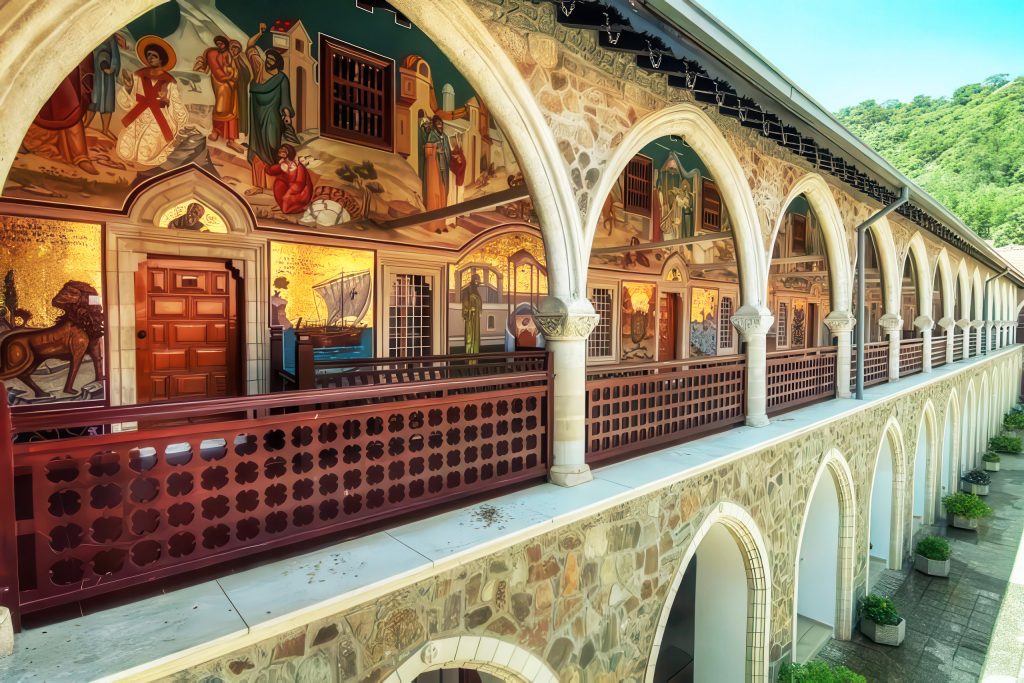 - Kykkos Monastery – Cyprus’s wealthiest and most influential monastery sits high in the Troodos Mountains, housing the revered icon of the Virgin Mary and elaborate gold-covered interiors. The atmosphere is grand and ceremonial, with large numbers of pilgrims especially during major feast days. Expect crowds but also powerful devotional energy. The monastery museum displays extraordinary religious artifacts and historical treasures.