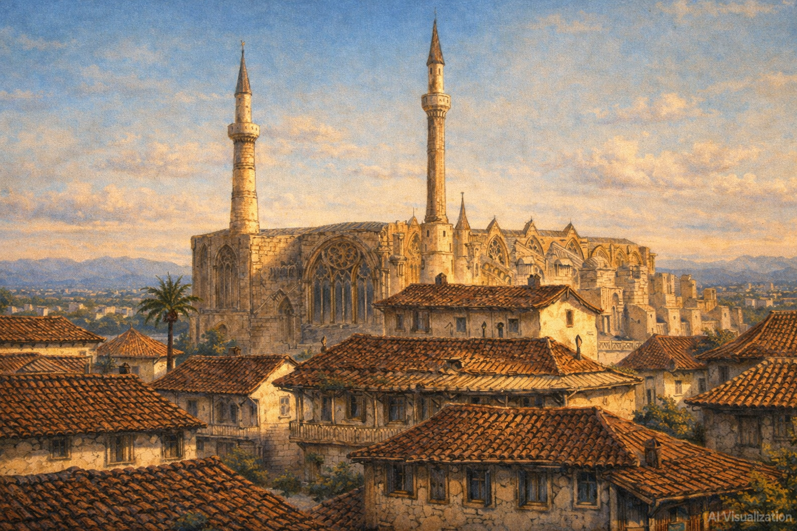 St. Sophia Cathedral, now called Selimiye Mosque, was built in the 13th century. It was converted into a mosque in 1570 after the Ottoman conquest of Cyprus. The building measures 66 by 21 meters inside and can hold about 2,500 worshippers. It was the coronation church for the Lusignan kings of Cyprus and later for the titular kings of Jerusalem and Armenia.
