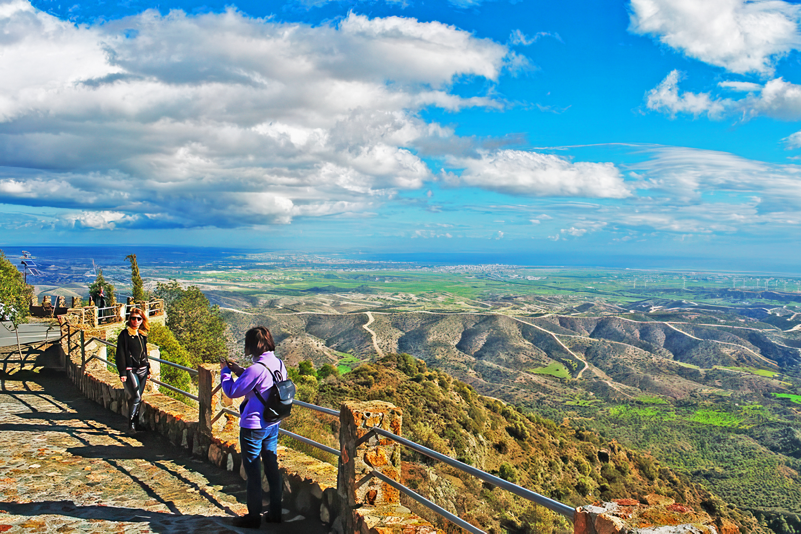 The landscape exhibits remarkable variety across relatively short distances. The climate in the area is Mediterranean with warm and dry summers from May until mid-October, and mild winters, with average annual rainfall reaching 500 mm.