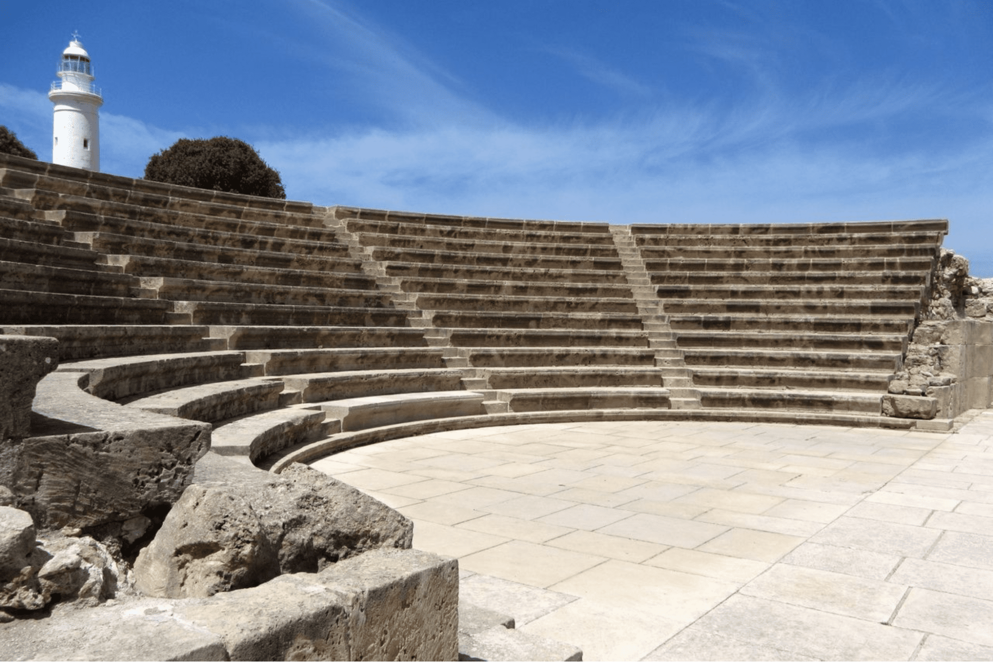 The Odeon, a 2nd century Roman amphitheatre, features 12 rows of limestone seating built in a crescent around a central stage. The structure hosts contemporary performances during summer months, continuing its original function as a public entertainment venue. The positioning near the harbor allowed residents and visiting merchants to attend theatrical performances and musical concerts that reinforced Paphos’s status as a cultural center within the eastern Roman Empire.