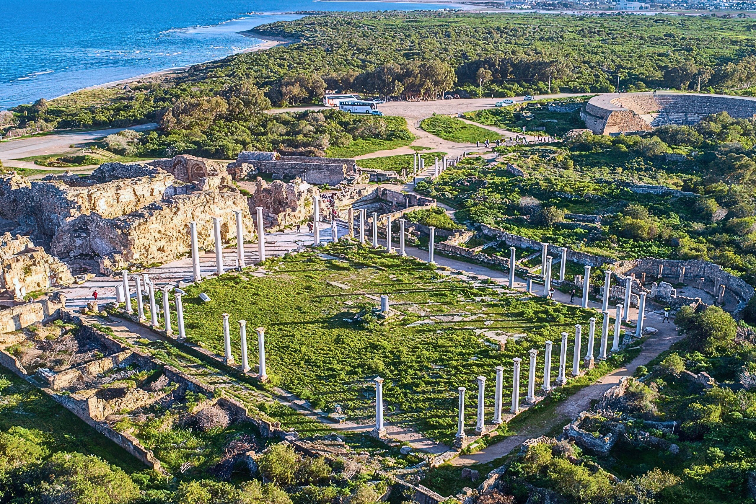 Salamis grew into Cyprus’s largest and most important city. During the Roman period, it surpassed even Paphos, the island’s administrative capital. The city stretched along the coast for about two kilometers and reached one kilometer inland. Much of ancient Salamis remains buried beneath sand and forest.
