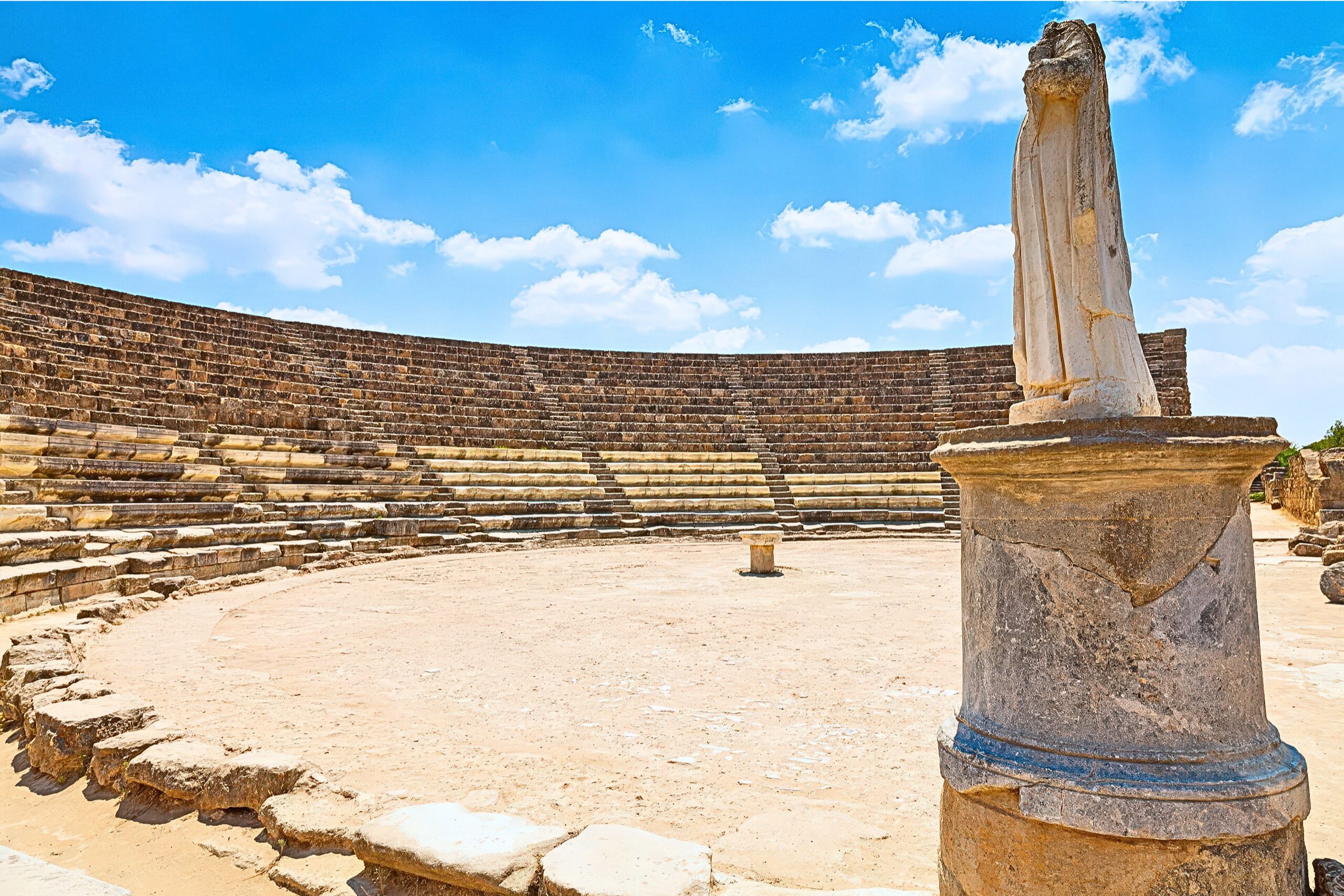 A theatre built during Augustus’s reign could accommodate 15,000 spectators. Earthquakes destroyed it in the fourth century, but modern restoration allows performances there again today. The scale of this theatre reflects Salamis’s population and cultural importance.