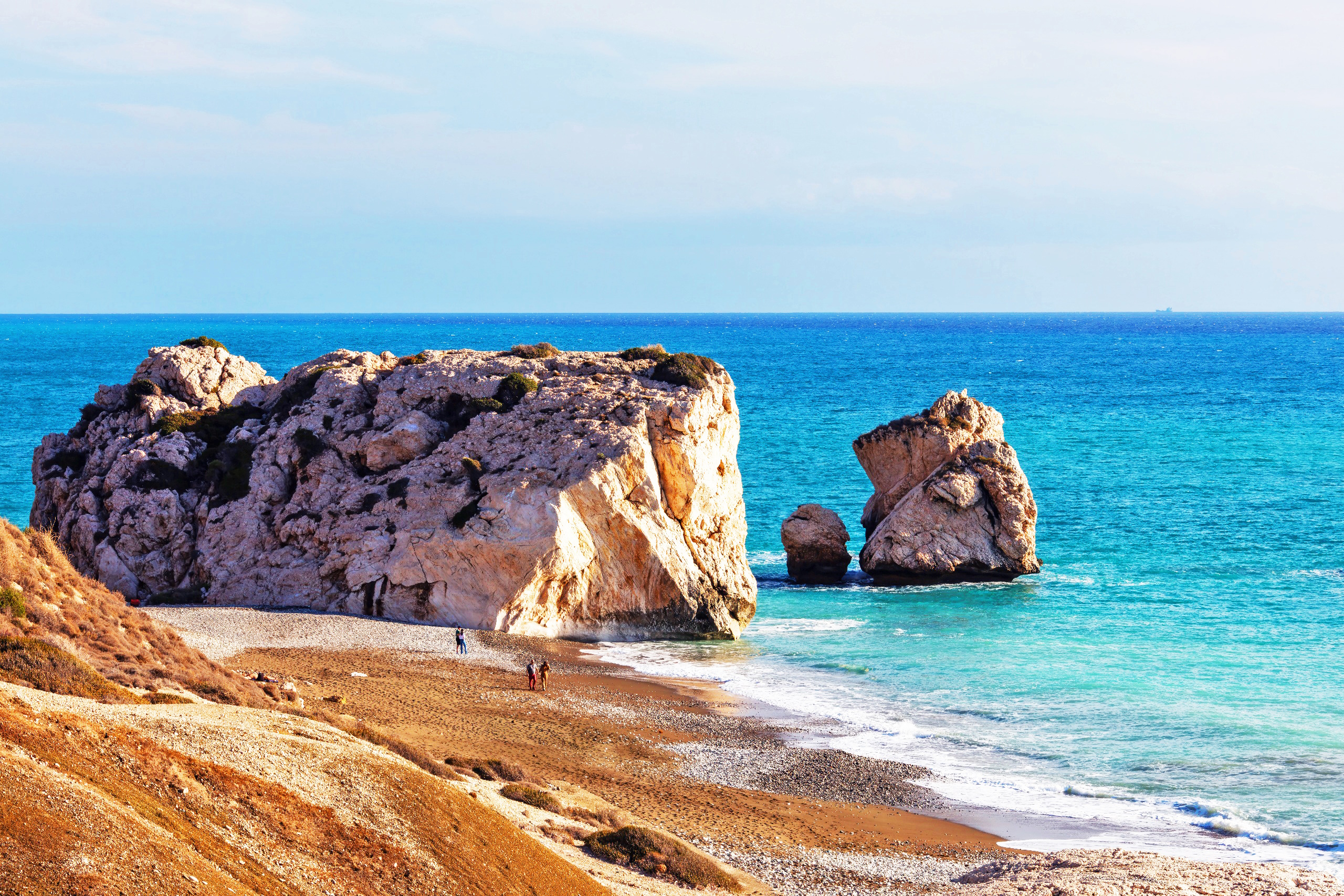- Petra tou Romiou — The legendary beach-rock where Aphrodite emerged from the waves is easily accessible along the coast road. Many visitors swim in the turquoise waters and photograph the dramatic sea stacks. Whether a visitor circles the main rock three times for good luck is entirely up to them.