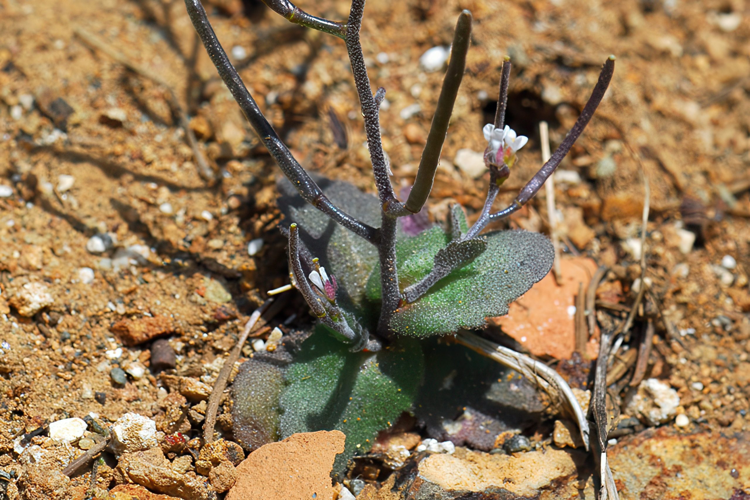 Arabis plants are typically low-growing, forming rosettes or mats with stems ranging from 10–40 cm tall. Their leaves are often toothed, oblong, and covered in fine hairs for protection against drought. Flowers emerge in dense clusters: Arabis purpurea boasts vibrant pink to purple petals, while Arabis cypria features white or pale pink blooms up to 1.5 cm across. Arabis kennedyae has smaller, lilac-tinged flowers on purplish stems, and Arabis verna adds violet hues. Seed pods follow, flat and elongated, dispersing in the wind.