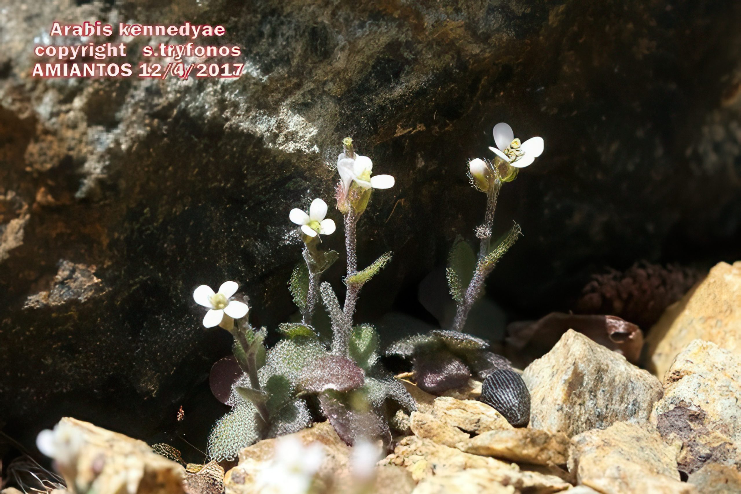 Botanically, Arabis species prefer calcareous or serpentine soils at elevations from 500 to 1,800 meters, often in open woodlands or cliffs. Arabis purpurea and Arabis cypria are perennials forming cushions, while Arabis kennedyae is an annual or biennial. They are pollinated by insects and play roles in soil stabilization. Conservation status varies: endemics are protected under Cypriot law and EU habitats directives, with threats from grazing, development, and climate change.