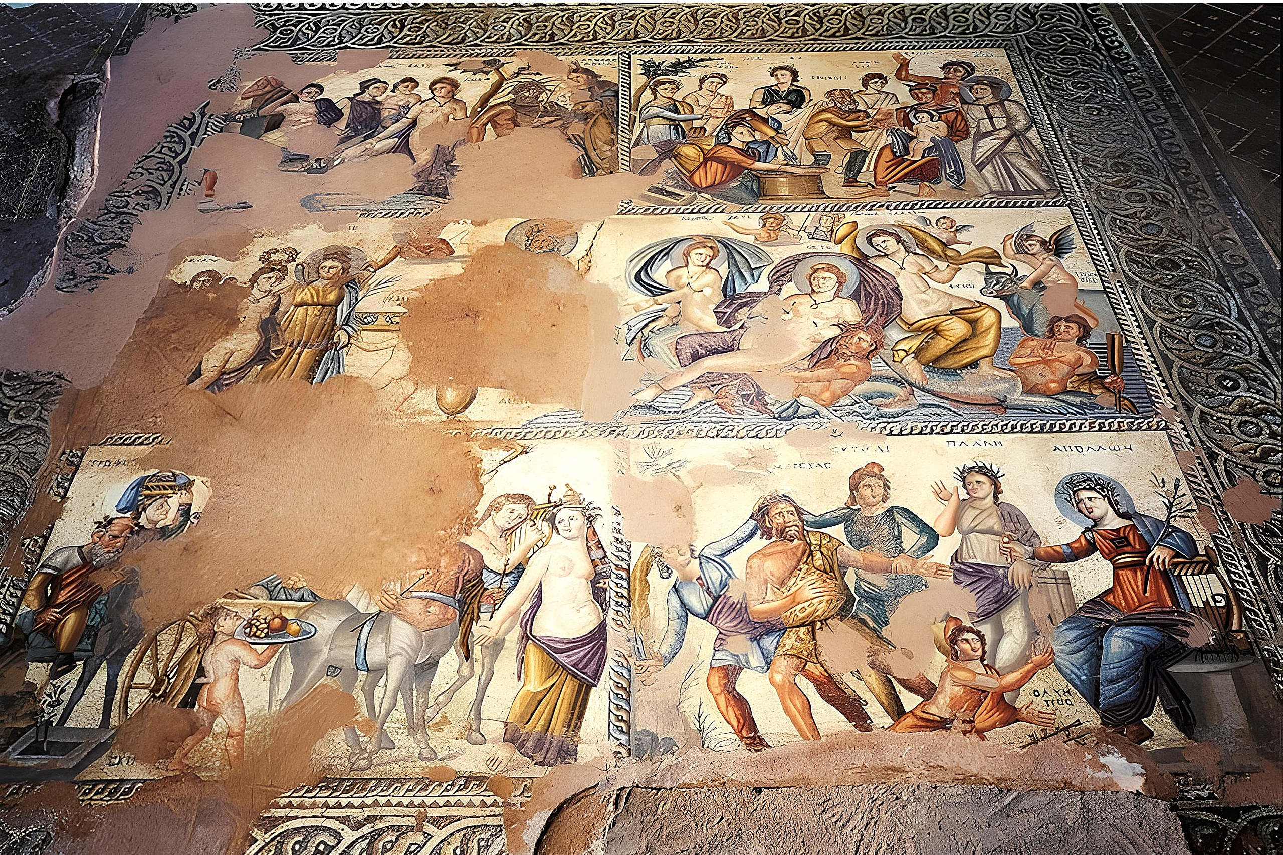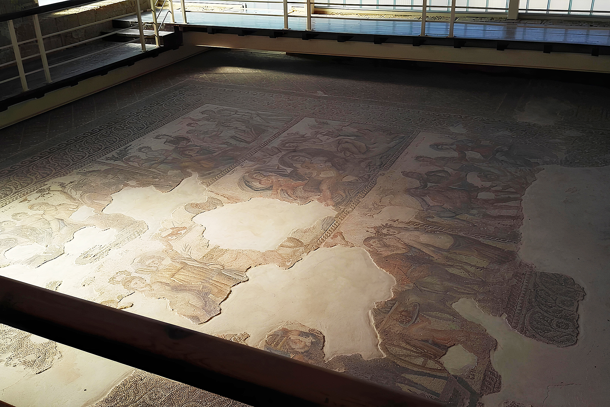 The mosaic floor unfolds as a sequence rather than a collection of unrelated myths. Each scene builds on the last, guiding the viewer through a progression of ideas.