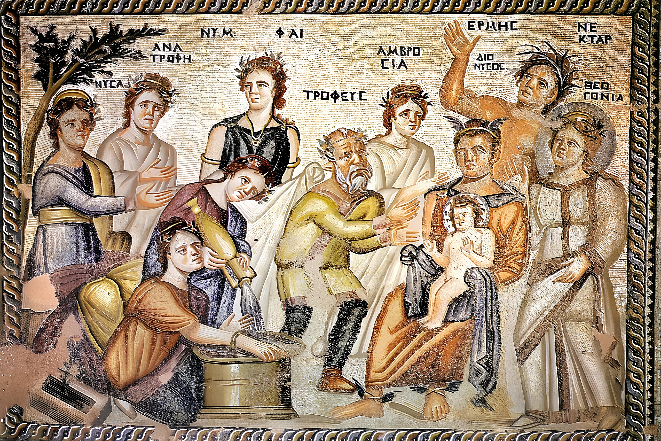 Christian imagery is subtly echoed and reinterpreted throughout the mosaics. The nurturing image of the infant Dionysus recalls contemporary depictions of the Virgin and Child. Apollo appears clothed and composed, marked by visual authority rather than classical nudity.