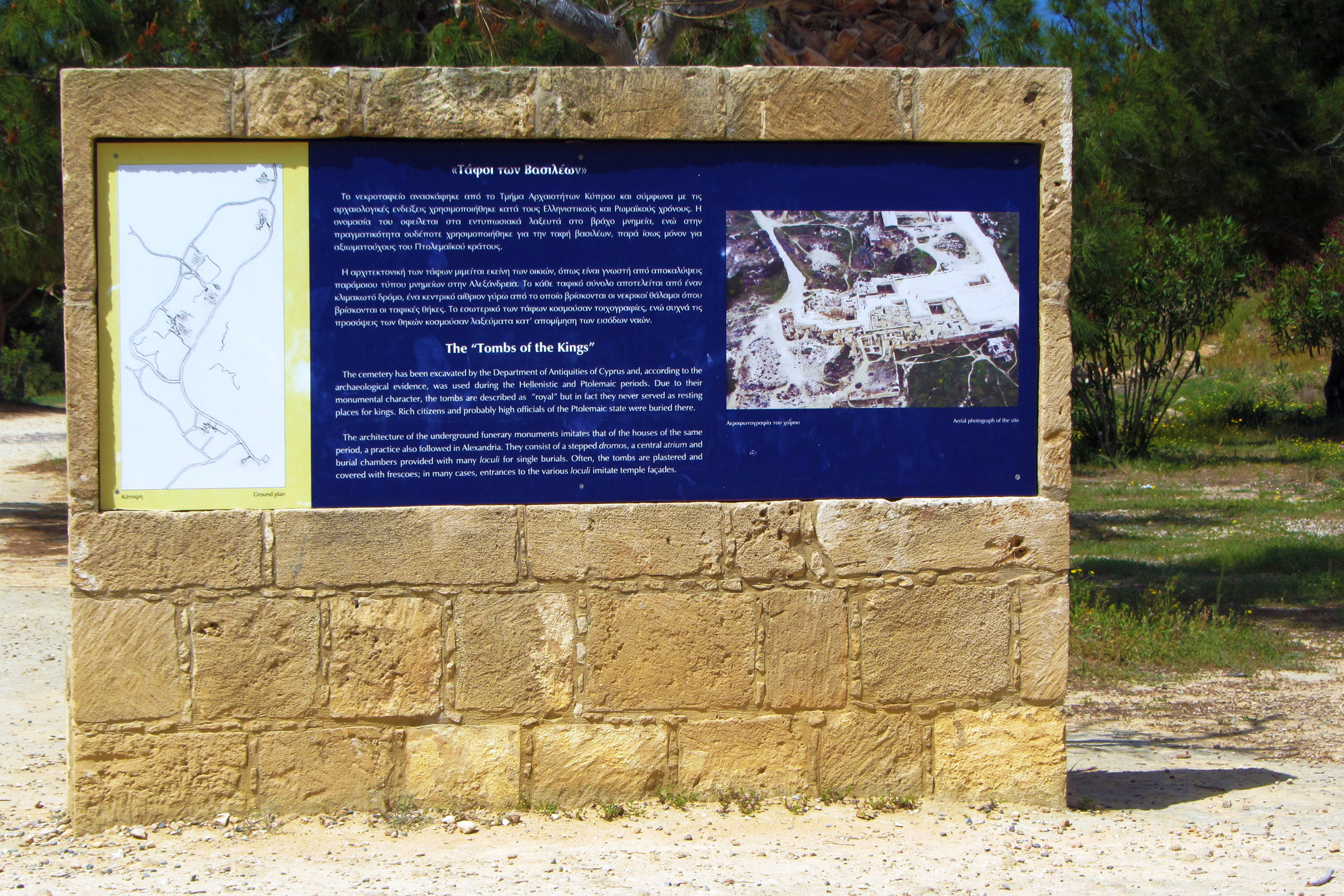 The site consists of a large necropolis spread across a wide area overlooking the Mediterranean Sea. Despite the name, no actual kings were buried here. The Cypriot monarchy was abolished in 312 BC, before most of these tombs were constructed. The name comes from the impressive size and grand architectural design of the burial chambers, which were considered worthy of royalty.