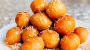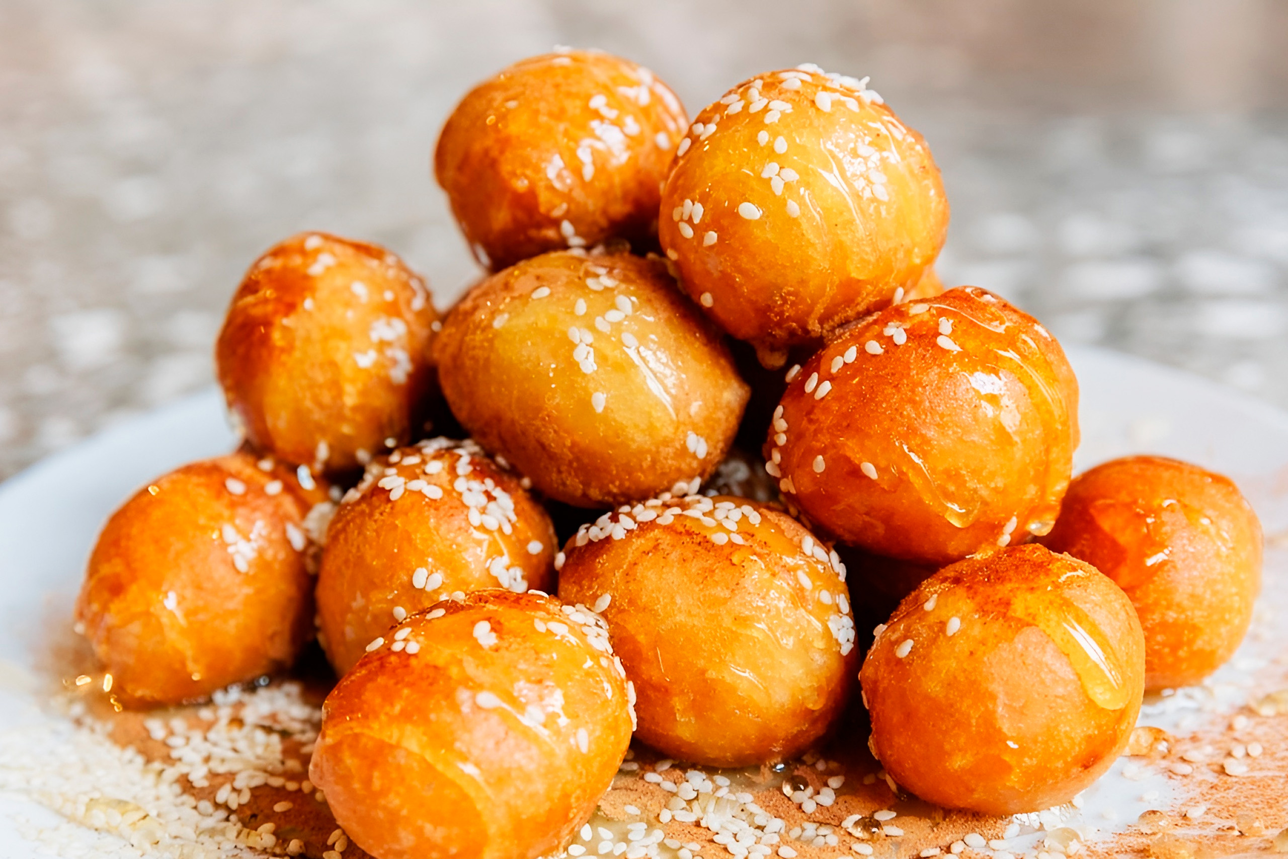 The palouze itself, made from grape juice thickened with flour and starch, is eaten alone as a pudding during harvest season. Loukoumades are deep fried dough balls soaked in honey syrup, traditionally sold at religious festivals. Flaounes are Easter pastries filled with a mixture of local cheeses, eggs, raisins, and fresh mint, baked only once a year for the Easter celebration.
