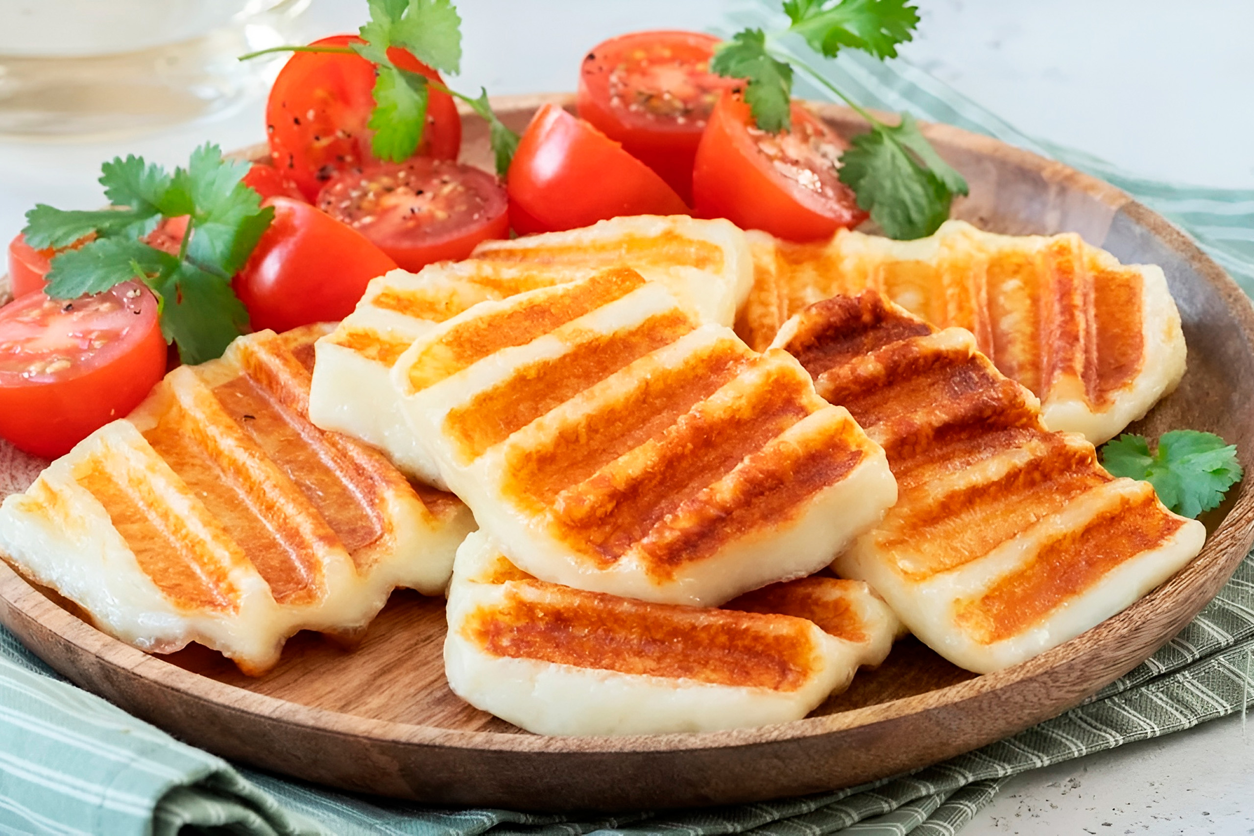 Fresh halloumi has a squeaky texture when bitten, softer and more complex in flavor than the exported versions sold abroad. Cypriots serve it with watermelon in summer, drizzled with honey in winter, stuffed in pita with tomato, or incorporated into pastries and pasta dishes. Halloumi dates to Byzantine times, with references to cheese production on Cyprus appearing in historical records from the 5th century onwards.