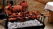 Kleftiko combines lamb with garlic, lemon, and herbs sealed in parchment paper and baked for several hours until the meat falls from the bone. The name means stolen meat and refers to the method of cooking in sealed clay ovens hidden in hillsides. Souvla threads large chunks of pork, lamb, or chicken onto long metal skewers and rotates them slowly over charcoal for up to two hours, producing crisp exterior and juicy interior.