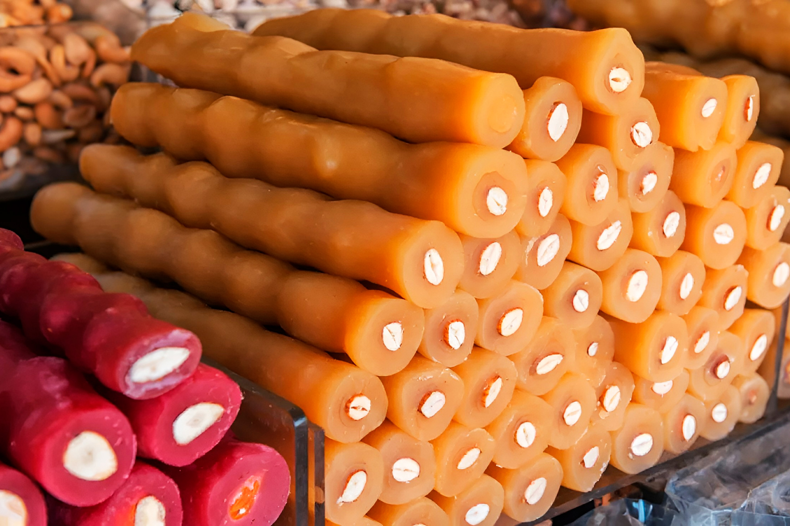 Carob pods, once called black gold, provided Cyprus’s main export before citrus replaced them commercially. The island was once the world’s largest carob producer. Carob syrup sweetens traditional desserts, provides natural energy, and serves as caffeine free alternative to chocolate. Soutzoukos strings almonds on thread and dips them repeatedly into thickened grape must called palouze, creating chewy cylinders that last for months without refrigeration.