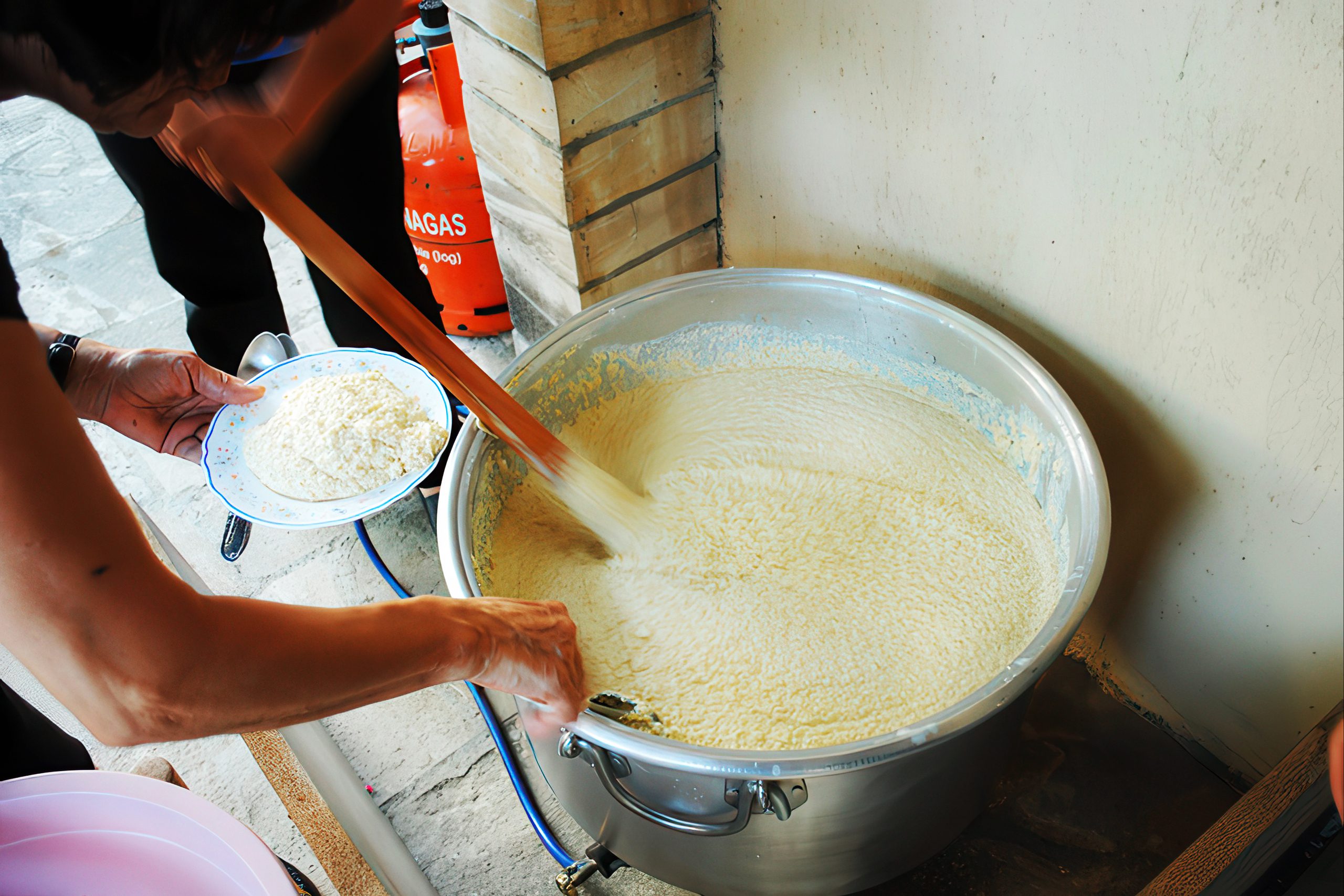 Traditionally, trahanas is prepared in the height of summer, when milk production peaks and drying conditions are ideal. Large pots are set over a fire, and wheat is added slowly to boiling sour milk. The mixture thickens into a heavy paste that demands constant stirring, often becoming a communal task.