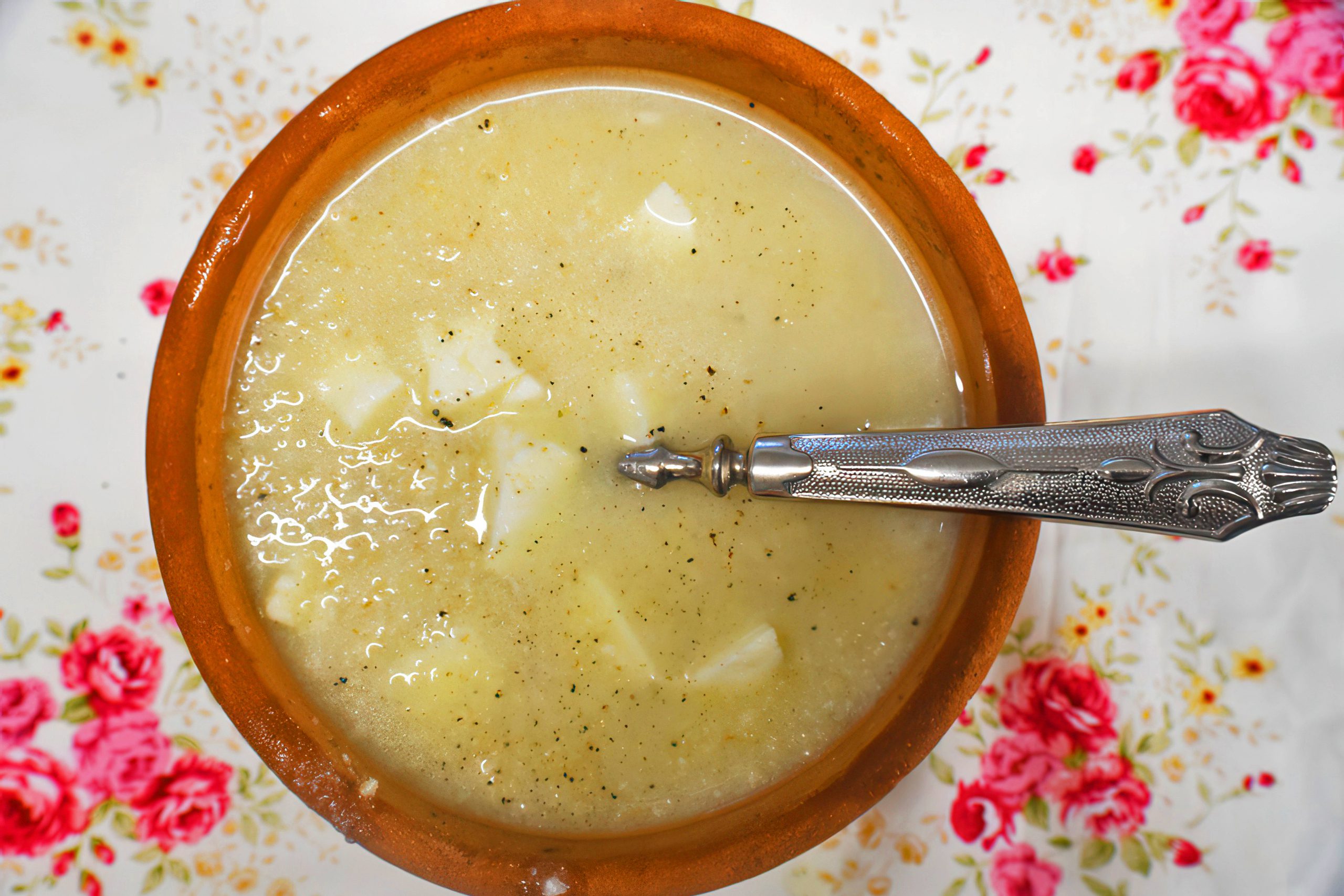 In Cyprus, trahanas soup is rarely served alone. Cubes of halloumi and sometimes fresh tomato are added near the end of cooking, softening without melting and adding texture and salt to the soup’s sour base.