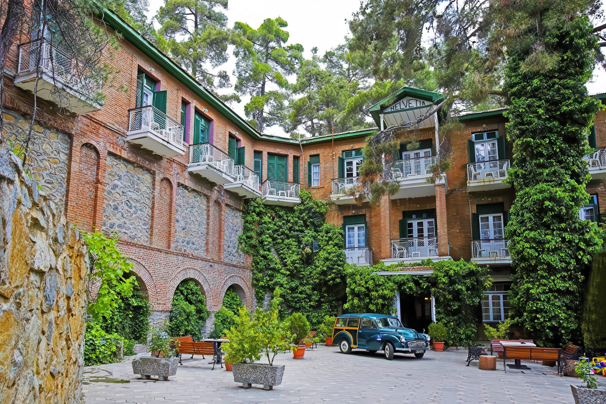 The Grand Hotel Helvetia, later renamed New Helvetia, was built in 1906 by Nikolaos Kypriotis from Limassol. He is considered one of the first hoteliers in Cyprus. When he expanded the hotel in 1929, he created a distinctive three-story building with red bricks made on-site using a special press that still exists today. The hotel imported classic furniture specially ordered from Austria. New Helvetia has operated continuously for over 100 years, making it the oldest functioning hotel in Cyprus.