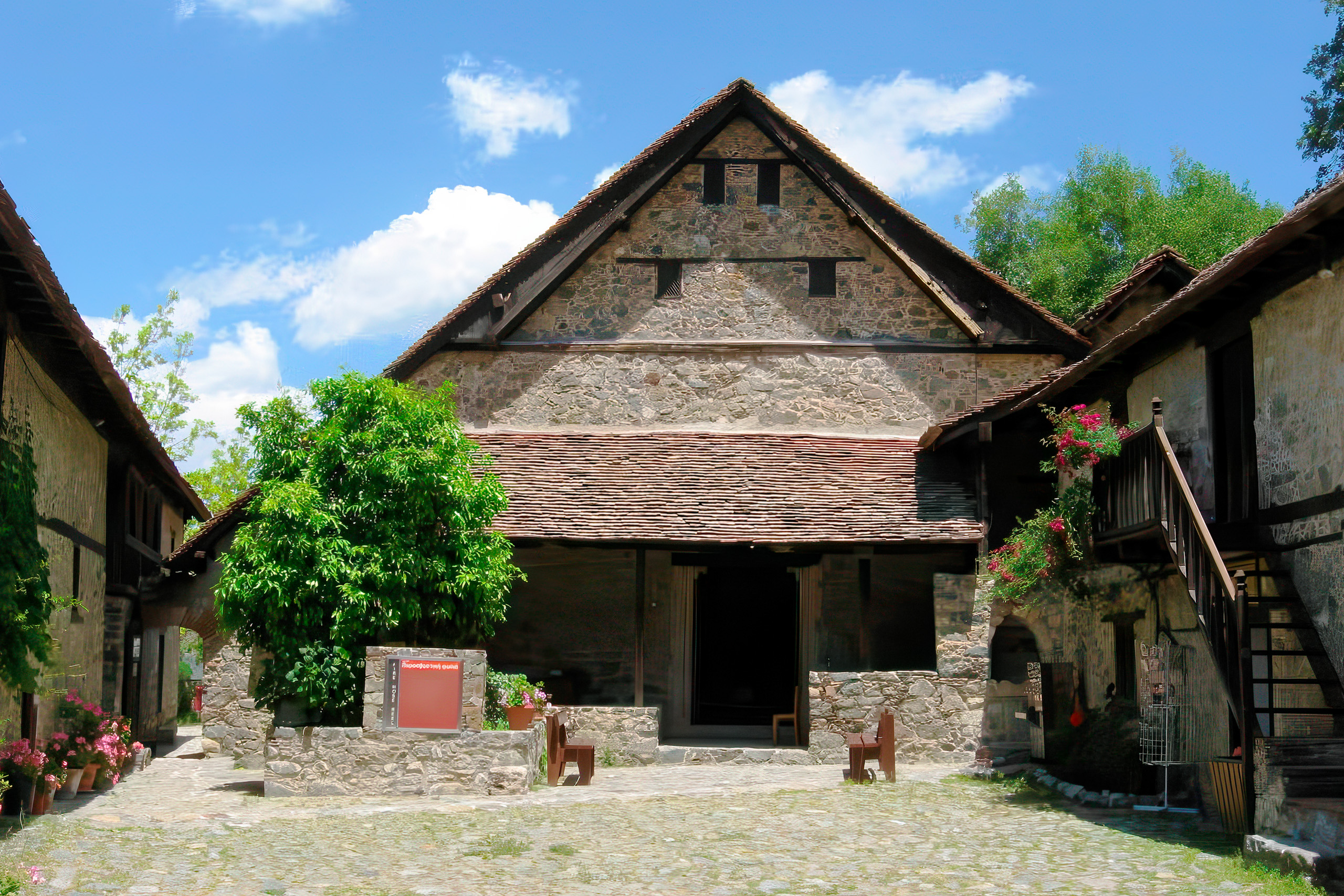 The Church of Agios Nikolaos tis Stegis (St. Nicholas of the Roof) in Kakopetria dates to the 11th century and represents the oldest surviving monastery church (katholikon) in Cyprus. The protective timber roof that gives it its name helped preserve fragile frescoes spanning multiple periods from the 11th through 17th centuries.