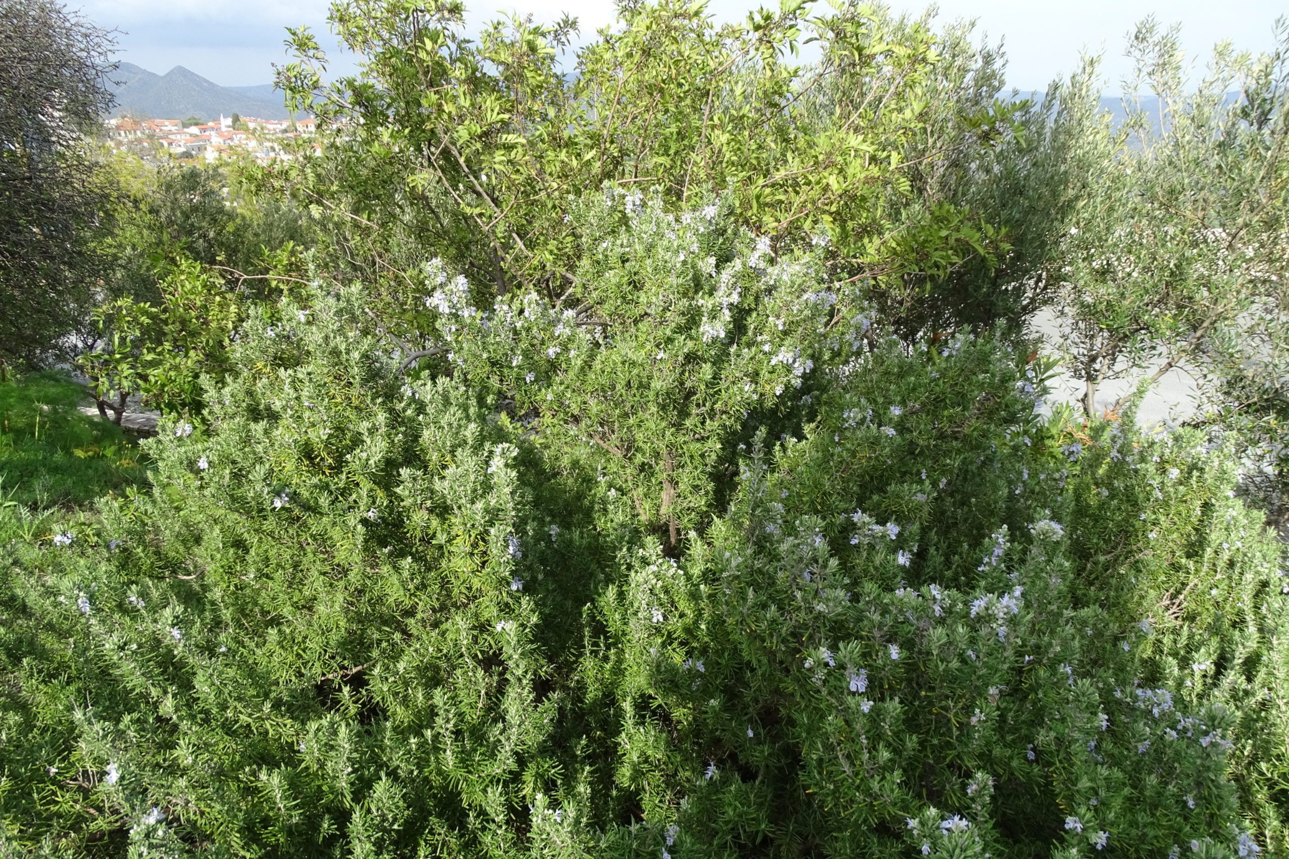 Picture a woody shrub reaching up to 1.5 meters tall, with narrow, needle-like leaves that are dark green on top and silvery-white underneath, curled edges helping it conserve water in dry spells. Its branches sprawl or stand upright, dotted with clusters of small, tubular flowers in shades of blue or purple that bloom sporadically year-round, attracting bees and butterflies. This structure isn’t just beautiful – it’s a survival kit: the leaves’ waxy coating reduces evaporation, while the flowers’ nectar supports pollinators in Cyprus’ semi-arid ecosystems. What makes it unique is its ability to thrive on poor, rocky soils, a trait shared with other Lamiaceae members adapted to the region’s hot, dry summers.