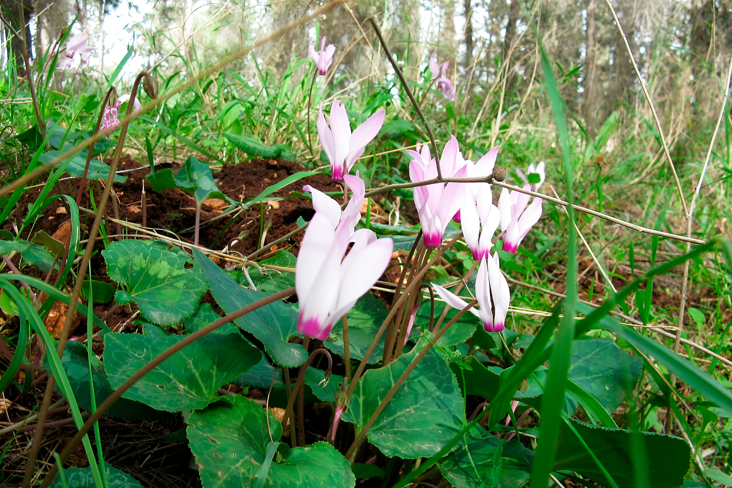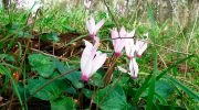 Various woodland species emerge during winter months such as cyclamen, narcissi, crocus, and muscari. The endemic Cyclamen cyprium, unique to Cyprus, is locally abundant in shady, stony places along the south-west coast and in the northern range. From February to April, pink cyclamen sprouts up from rocky foothills and thickets and forms a striking adornment to the Baths of Aphrodite.