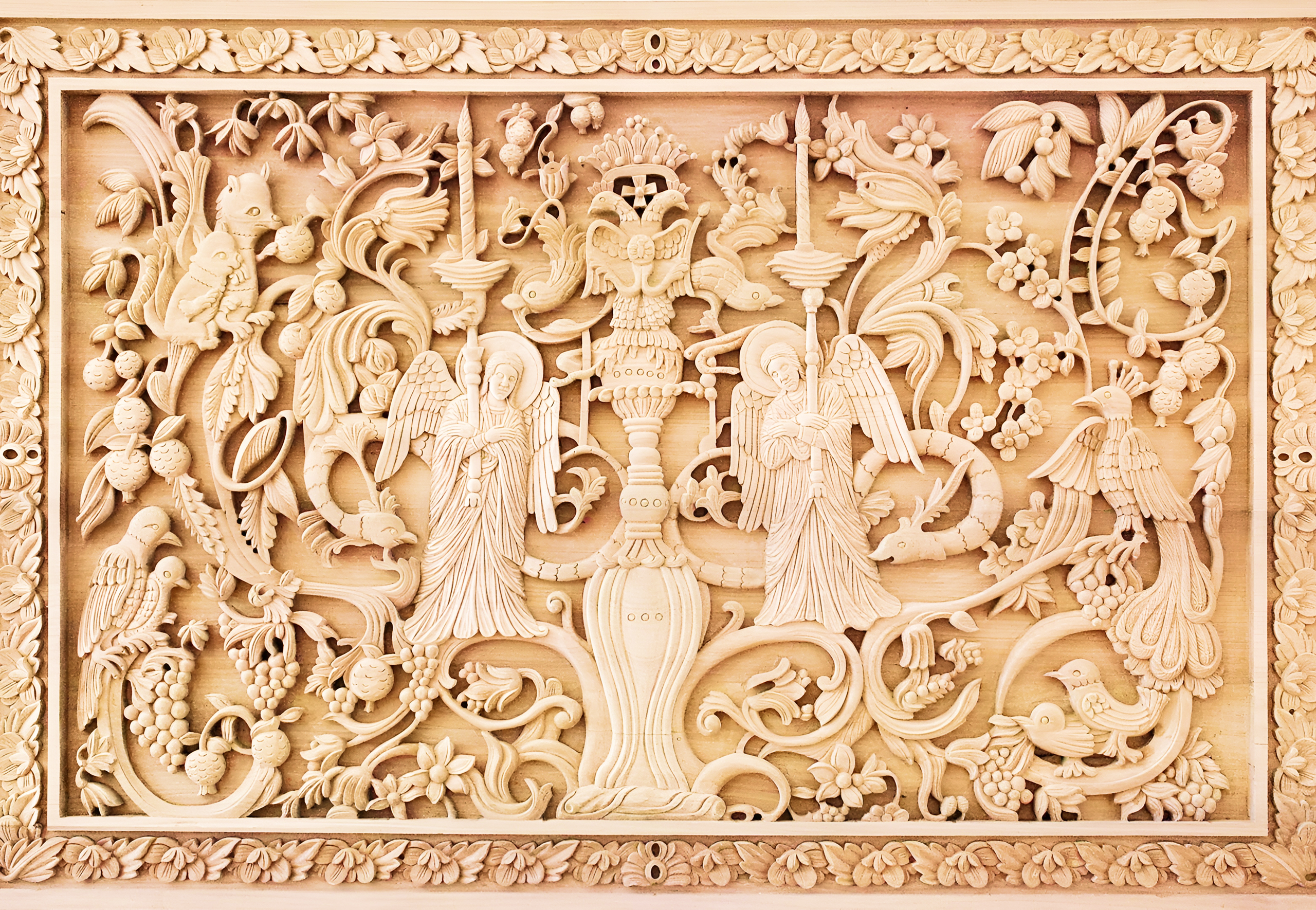 Furnishings like bishop thrones included thrones with armrests carved as lions for strength, while candelabra had twisted stems symbolizing the Tree of Life. Techniques involved relief carving for depth, with gold leaf on high points for luminescence in candlelight. Patterns drew from nature: pomegranates for fertility, fish for Christ, creating a symbolic language. Regional variants: southern carvings more floral from Venetian influence, northern geometric from Ottoman simplicity. Quality depended on wood seasoning – dried for years to prevent cracking – and artisan skill, often family-taught.